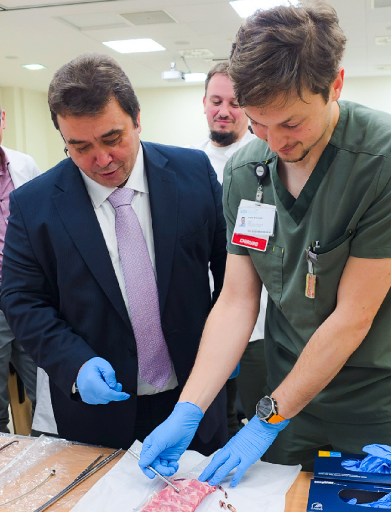 Podczas wizyty profesor wygłosił wykład pt. Non-standard approaches to gunshot wounds to the neck and chest, the use of magnetic instruments for treating wounds, poświęcony niestandardowym metodom leczenia obrażeń postrzałowych szyi i klatki piersiowej oraz wykorzystaniu instrumentów magnetycznych w terapii tego typu urazów.
